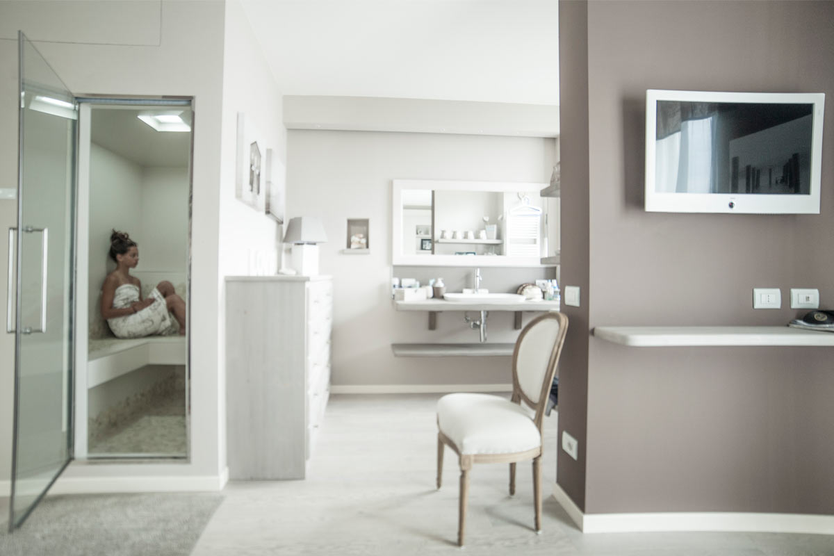 100 sqm, 2 FLOORS, 2 BEDROOMS, 2 BATHROOMS, SPA HAMMAM SAUNA UNDERFLOOR HEATING + GAS FIREPLACE MANSARDA WITH KITCHEN & LIVING OPEN SPACE 4 TERRACES LAKE & MOUNTAIN VIEW IDEAL FOR 4 PEOPLE.